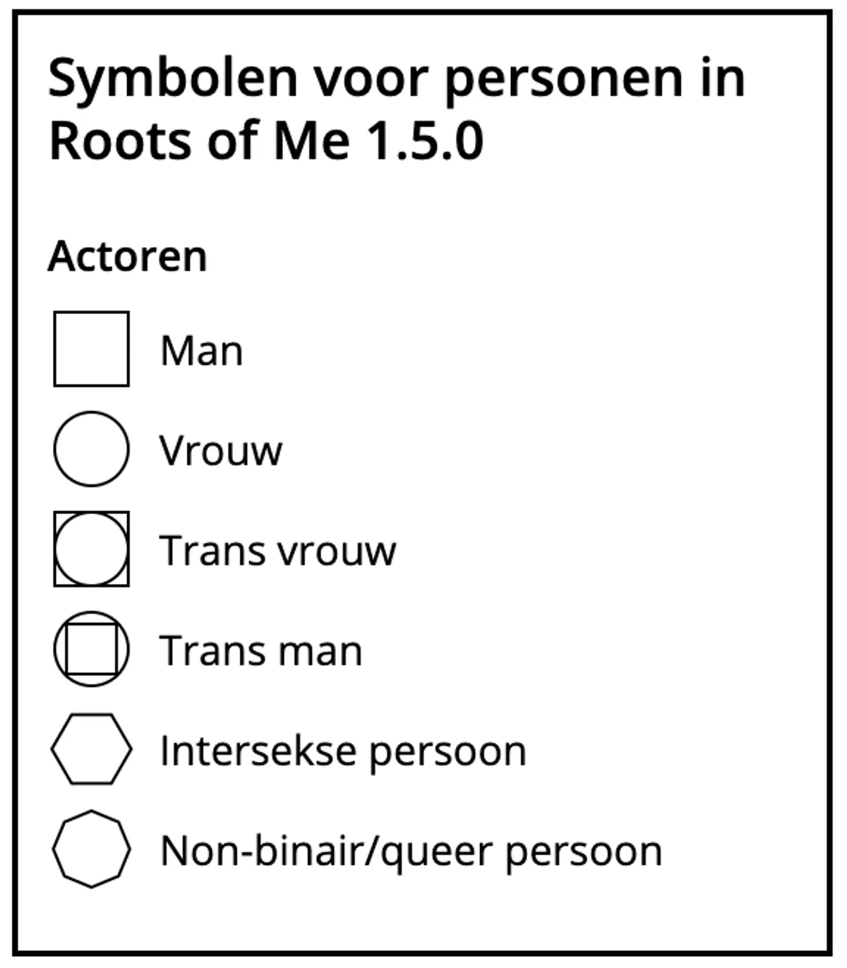 Bij Roots of Me streven we naar inclusieve hulpverlening. We willen ruimte bieden aan elke familie, met respect voor diversiteit en aandacht voor ieders unieke verhaal. Feedback en nieuwe inzichten helpen ons om de software voortdurend te verbeteren. Een voorbeeld hiervan zijn de aanpassingen die we hebben gedaan in Roots of Me versie 1.5.0 op het gebied genderidentiteit. Download de meest recente lijst van genogram symbolen.
