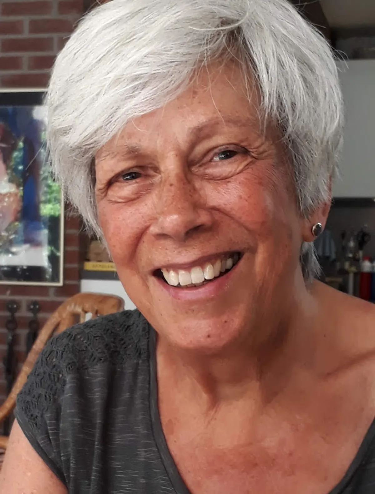 Zijn vrouw Lisa (65) heeft veel verschillende banen gehad. Van verkoopster in een tapijtwinkel tot interieurstylist, ze heeft altijd creatief werk gehad. Zij heeft een paar jaar na de geboorte van haar kinderen een kunstopleiding gevolgd. Lisa schildert, geeft lessen en exposities en heeft een eigen atelier. Het kunstenaarschap geeft haar enorm veel energie. Lisa kan door de lockdown tijdelijk geen exposities houden en lesgeven, maar ze kan gelukkig wel naar haar atelier. Gezien de aard van haar werk en het plezier dat ze eruit haalt is Lisa nog niet van plan te gaan stoppen met werken.