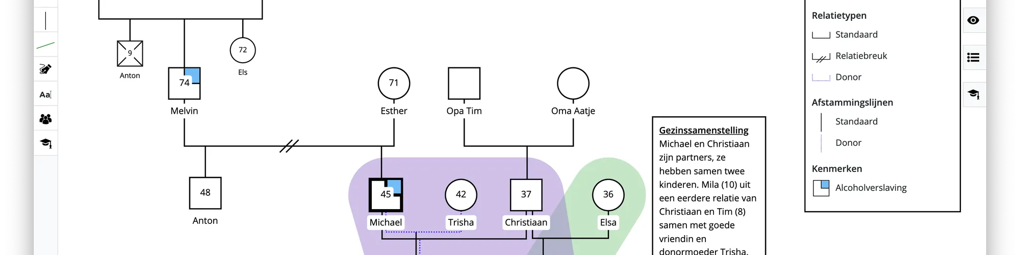 Maak per genogram unieke kenmerken aan om eigenschappen in het genogram door de generaties heen uit te lichten.